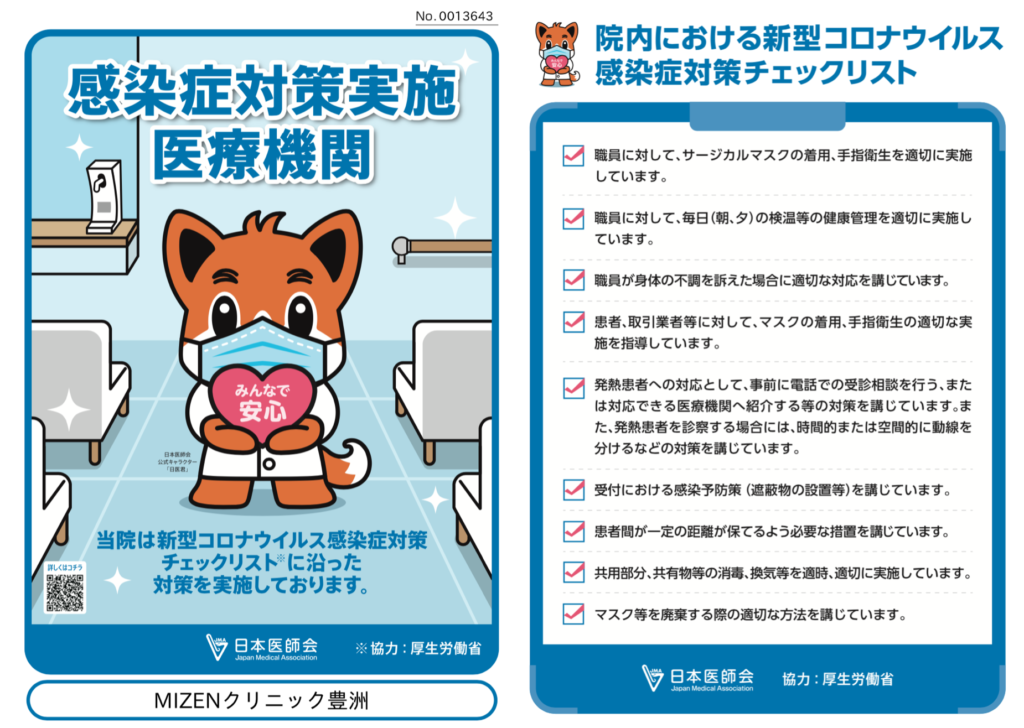 当院では,日本医師会のチェックリストに沿った対策を実施しています。